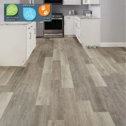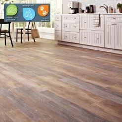 Update your home interior with this luxury vinyl plank flooring. Designed for indoor, commercial or residential use, this anti-microbial flooring resists mold and mildew. A hardwood appearance creates a charming look. These easy-to-clean planks require an interlocking installation over tile, vinyl, wooden or concrete subfloors. Scratch and stain resistant, they’re 100% waterproof for long-term use.