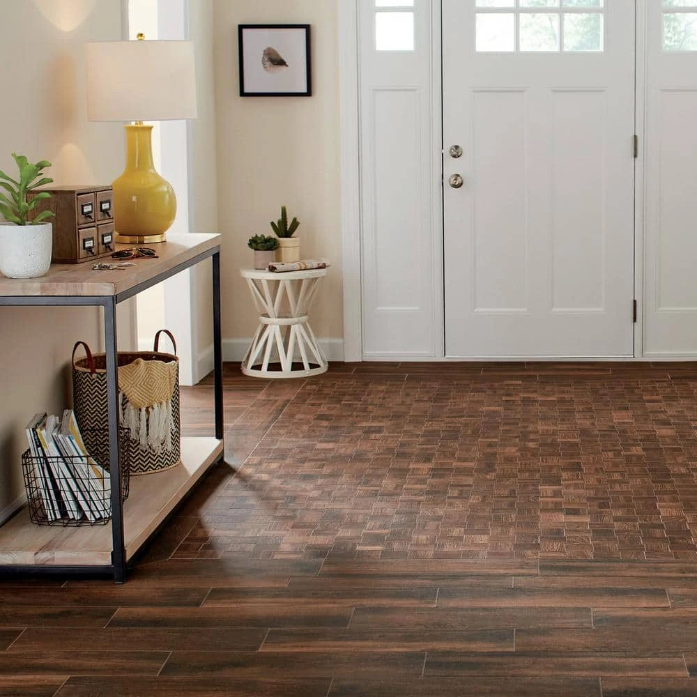 LifeProof Autumn Wood Slip Resistant Porcelain Tile is now complete with coordinating mosaics and trim. This cherry-brown wood look porcelain creates the classic look of real wood combined with the unmatched performance of LifeProof tile and is 50% more slip resistant* than ordinary tile. Use this modern basket weave mosaic to create dimension in your home. Create a kitchen backsplash, or accent your floors and walls. You can even create a clean spa look in your shower. Pair it with LifeProof Autumn Wood 6 in. x 24 in. porcelain floor and wall tile for a complete look that is as beautiful as it is durable. *When compared to tiles that meet a DCOF less than or equal to 0.42.