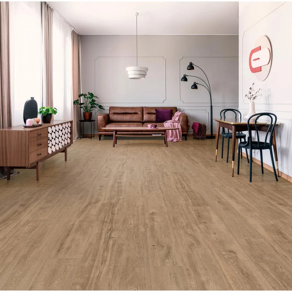 Lifeproof waterproof laminate flooring offers premium design and style without sacrificing performance. Its natural wood grain patterns and species-authentic texture seamlessly emulate the unique beauty of a hardwood floor. Combining the look and feel of traditional hard wood flooring with the durability of laminate, the Lifeproof collection is the ideal laminate floors for your home.Crafted to whistand busy environments, Lifeproof laminate flooring is robust and features waterproof protection that provides exceptional defense against everyday household spills, splashes, and water accidents. Its enhanced AC5 wear rating offers a highly durable surface that can stand up to high-traffic households or light commercial application.Thanks to its engineered waterproof locking technology and pre-attached underlay, Lifeproof laminate flooring is easy to install. Planks feature an angle tap installation system that only requires tapping on the short edge of the product without any need for glue or expensive tools. Lifeproof waterproof laminate wood flooring collection is made in Germany and is GreenGuard Gold certified to ensure the highest quality indoor air standards are met.