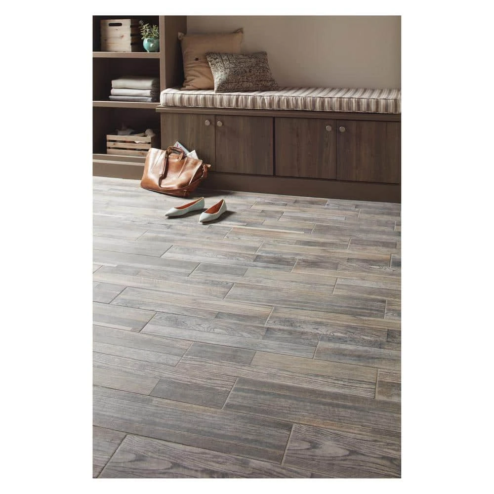 The LifeProof Slip Resistant 6 in. x 24 in. Porcelain Tile in Pewter Wood is 50% more slip resistant* than ordinary tile. These wood textured tiles combine the authentic look of weathered wood in shades of brown with the performance of porcelain. This tile is water resistant, stain proof, and scratch-resistant – it’s the perfect low maintenance and easy to clean floor for your busy home. LifeProof tile is so durable it can even be installed outdoors to create a beautiful patio, it wont freeze fade or crack making it the perfect solution for your next home project. *When compared to tiles that meet a DCOF less than or equal to 0.42.